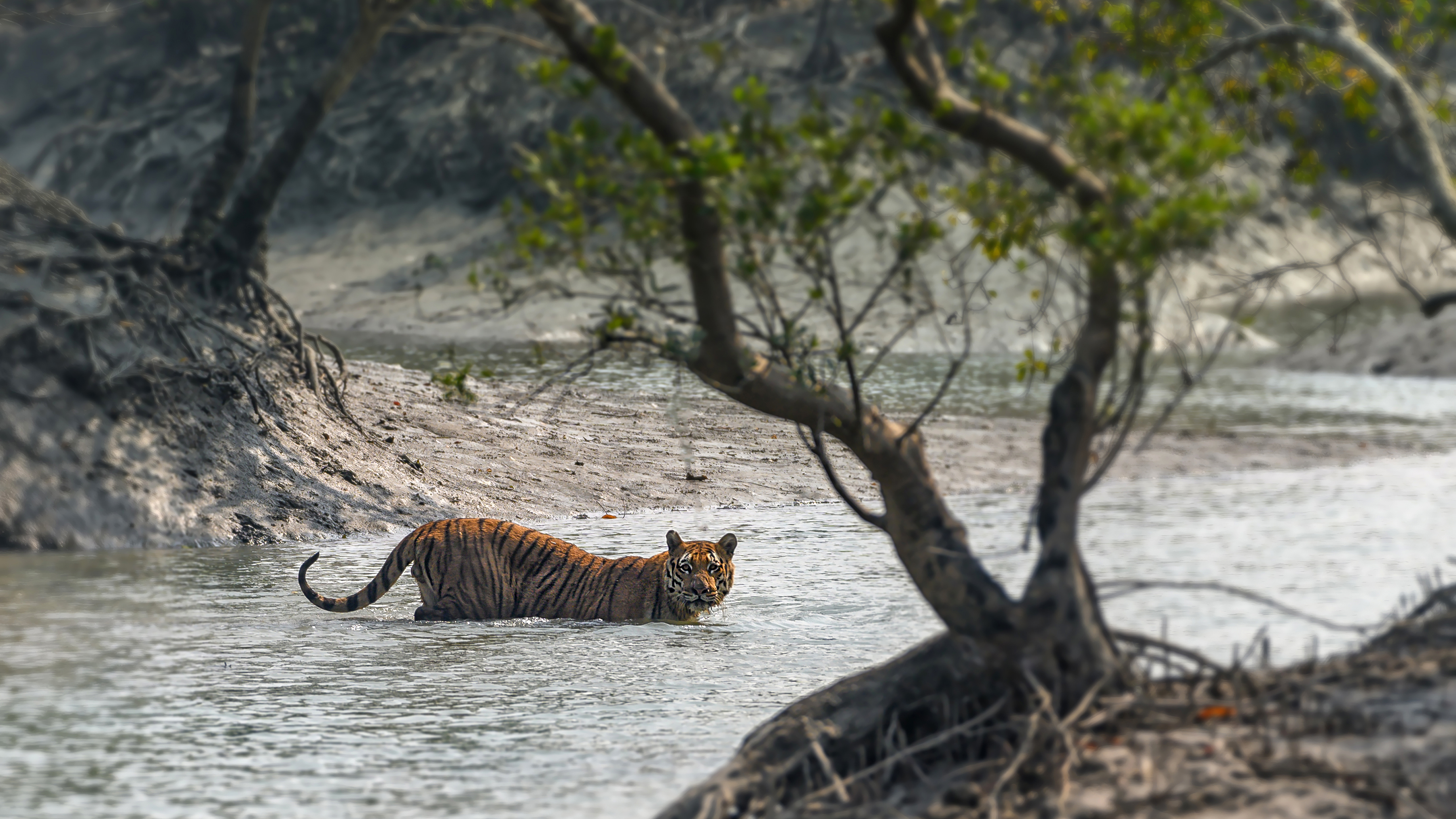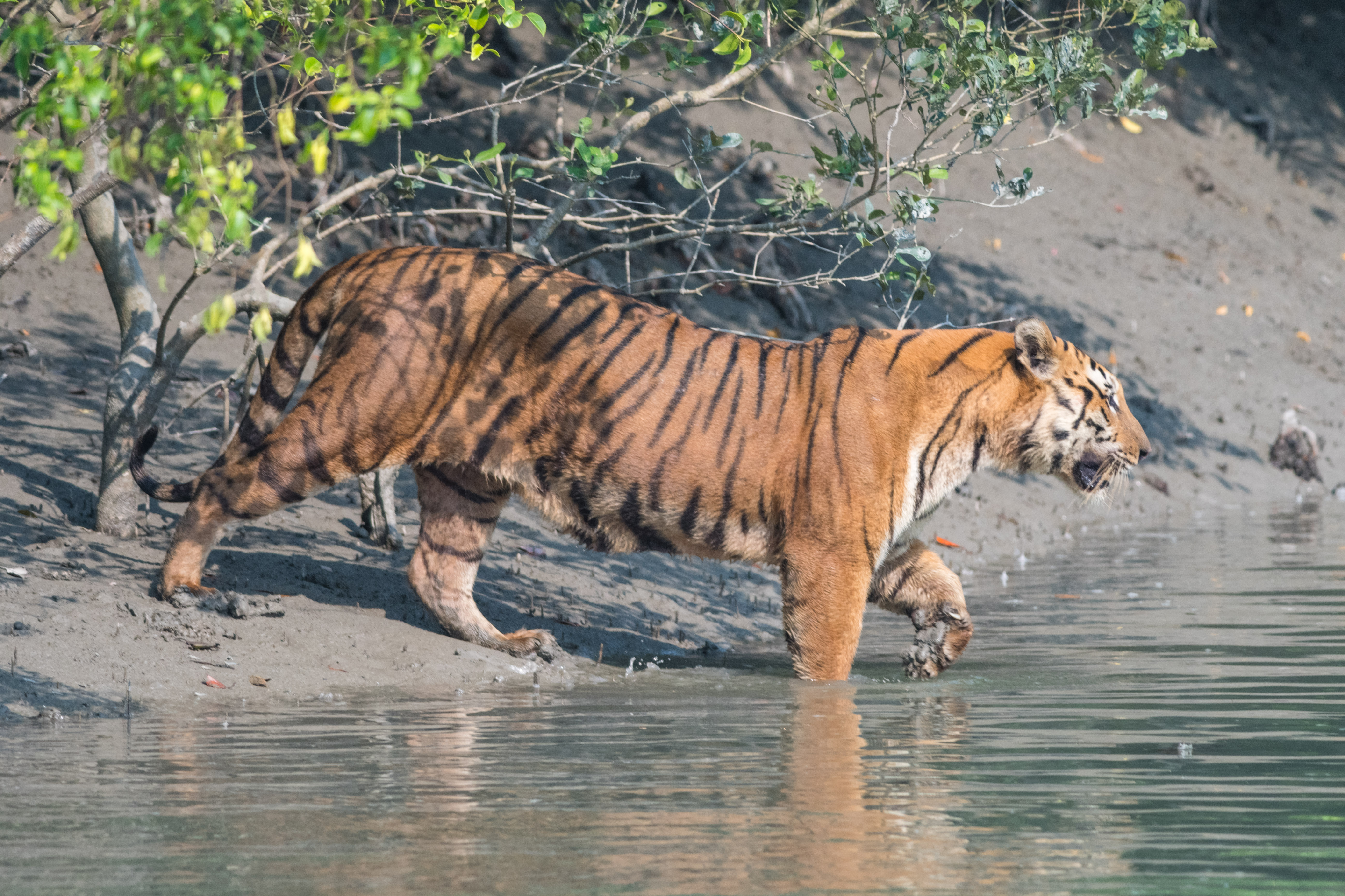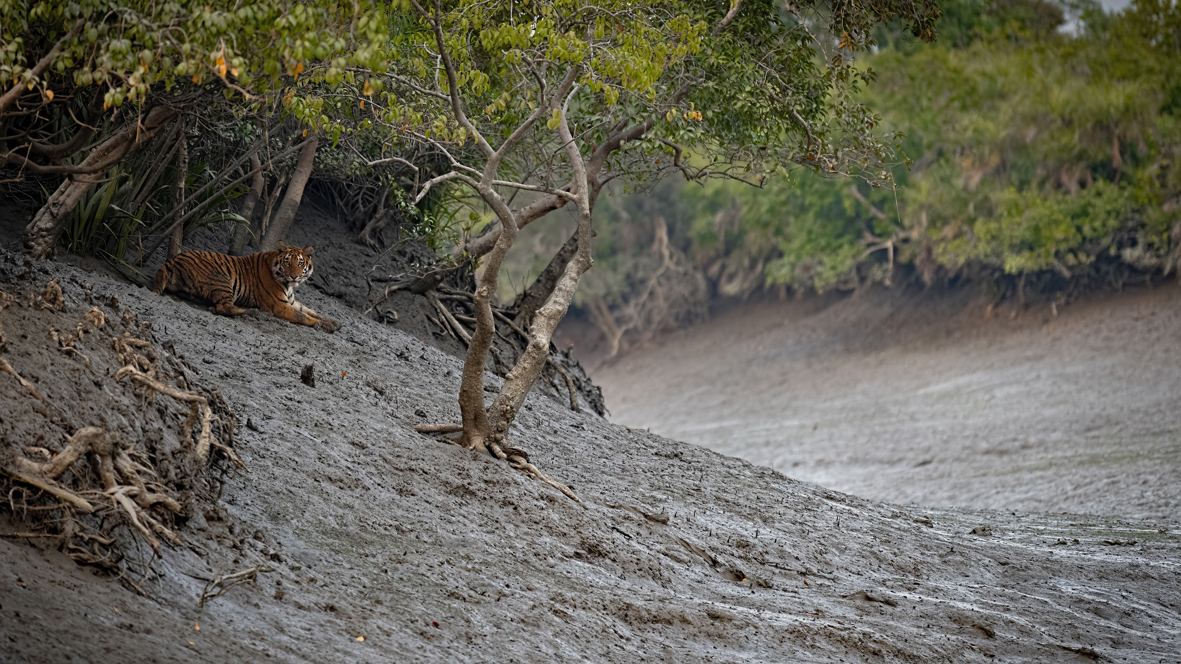 “After 4 days of tracking the elusive Bengal Tiger, we were finally able to predict where this individual might cross a creek. These big cats have adapted to life in the mangroves, and shadow through creeks and channels in search of prey.”