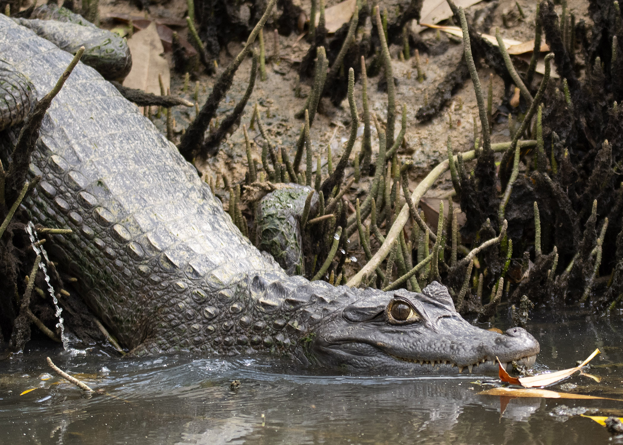 “The green sea turtle is taking shelter in the mangroves. Green turtles are born on beaches, grow up in the open ocean, eat seagrass and hide in mangroves and coral reefs. Protecting these ecosystems are essential to protecting these species.”